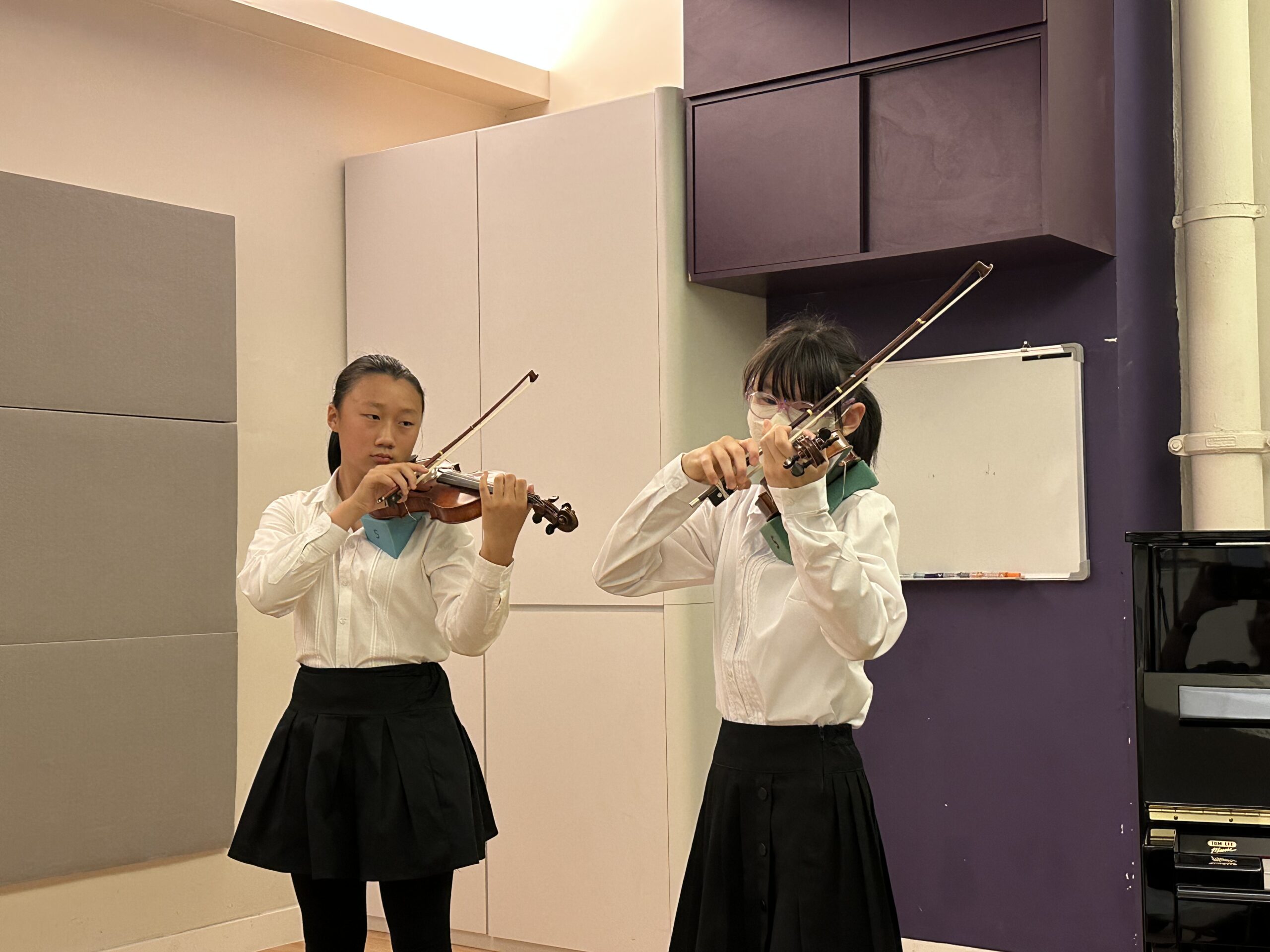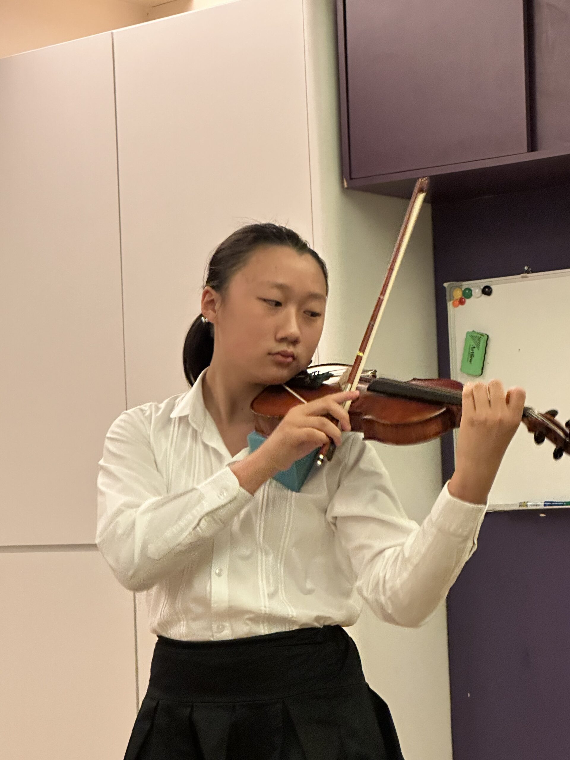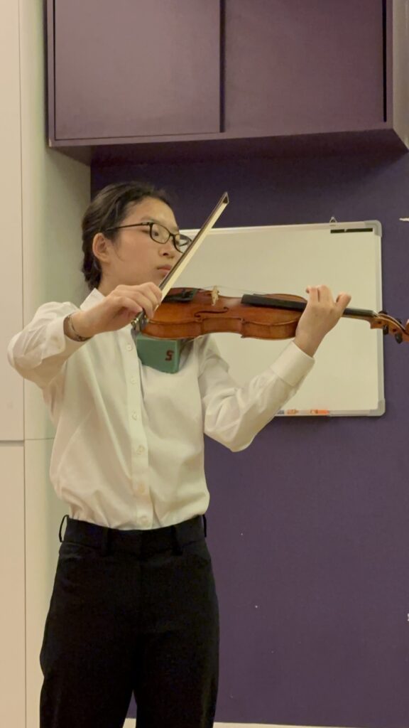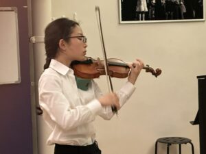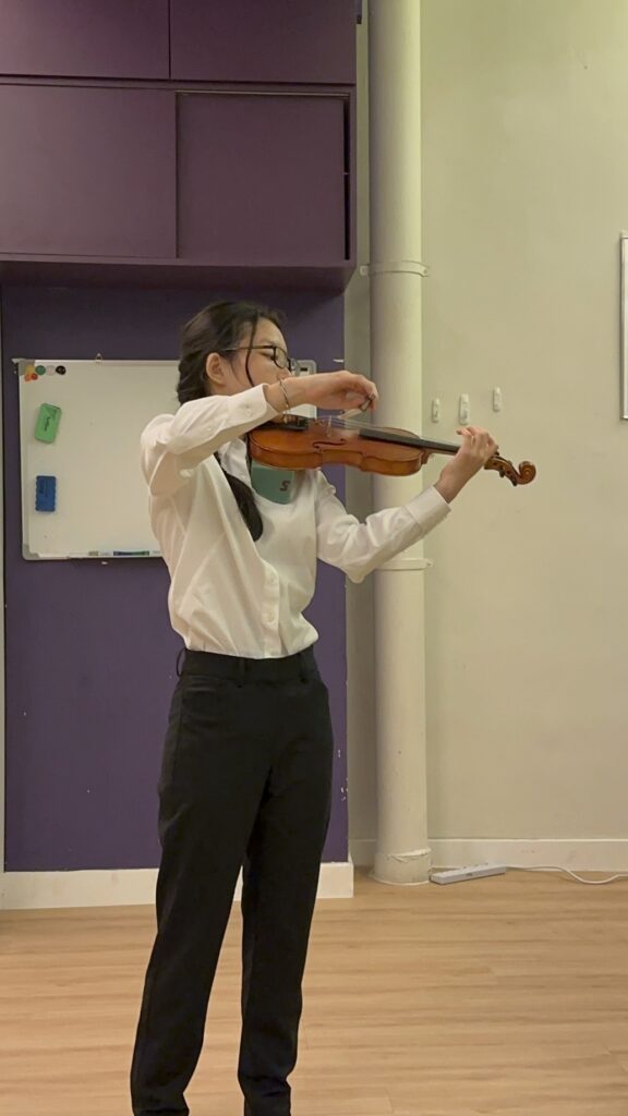In this recital, I think I did fine overall, but with much room for improvement. The piece that I think I played best was Martinni Gavotte, as I improved a lot from the start of preparation for the recital. I also made sure to communicate dynamics and give cues to Emma and/or Ms Sonomi. Individually, I made sure to use contrasting dynamics between each section and use appropriate bow divisions. However this piece also had some issues, with the E section having some mistakes and maintaining an issue to play with the harmony. The piece that needed the most improvement was Gavotte in G minor as the dynamics were inconsistent, as the way they increased or decreased depending on how high the note was wasn’t linear and the dynamics would seem to suddenly increase as I arrived at the e string. I also forgot the correct structure of the piece and unlike other pieces with mistakes, it took a very long time for me to reset myself and keep going. The piece where I communicated the best was Gossec Gavotte. In Gossec, specifically at the end of the B section and start of the C section where I did the retard and pause into 2 cues with different tempos. In conclusion, the recital went well overall from communication and teamwork ingredients aspects but with too many small individual mistakes sprinkled throughout.